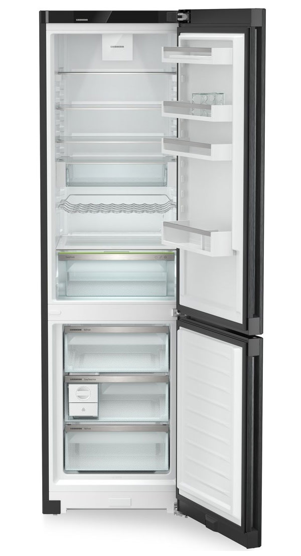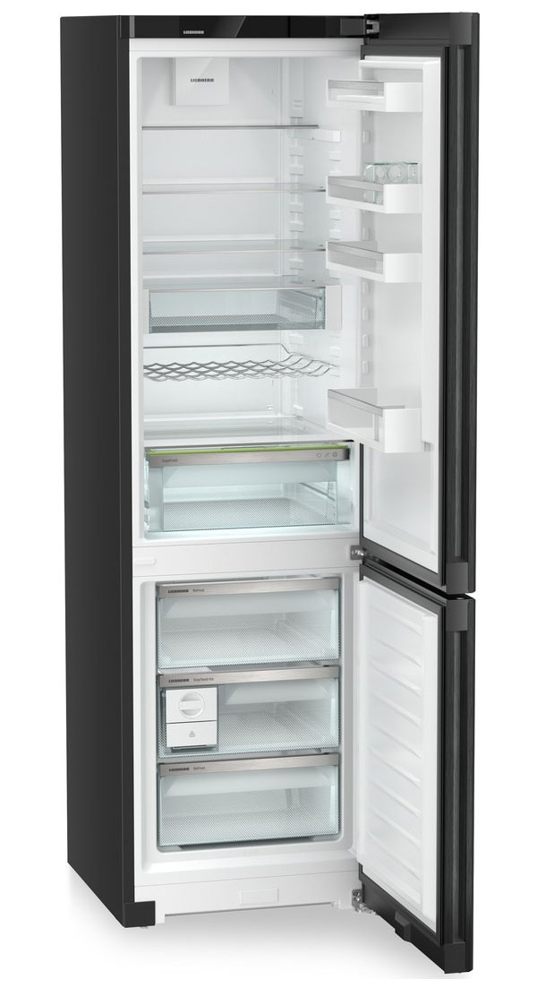 За свежесть продуктов отвечают фирменные технологии Liebherr. EasyFresh поддерживает повышенную влажность для неупакованных овощей и фруктов, продлевая их срок годности. В холодильной камере равномерное распределение холода обеспечивает PowerCooling с тихим вентилятором, а SuperCool быстро охлаждает свежие покупки и затем отключается автоматически.