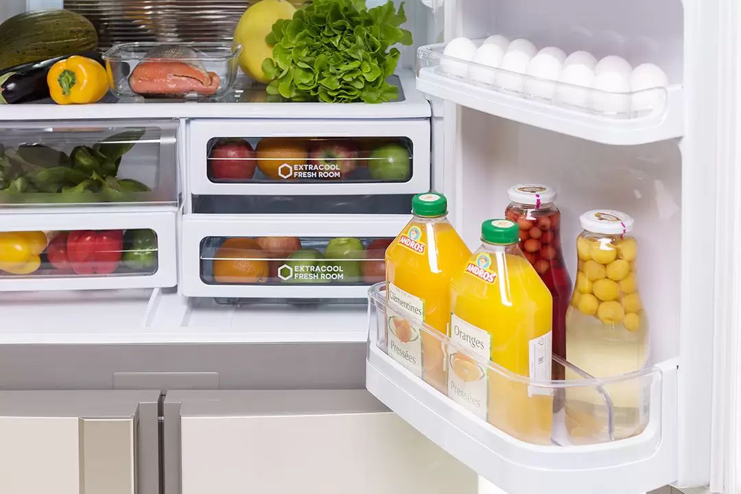 Модель впечатляет вместительностью: полезный объём 605 л рассчитан на крупные семейные закупки и удобную организацию пространства. Отсутствие центральной перегородки в холодильной камере и широкие стеклянные полки делают размещение продуктов максимально удобным.