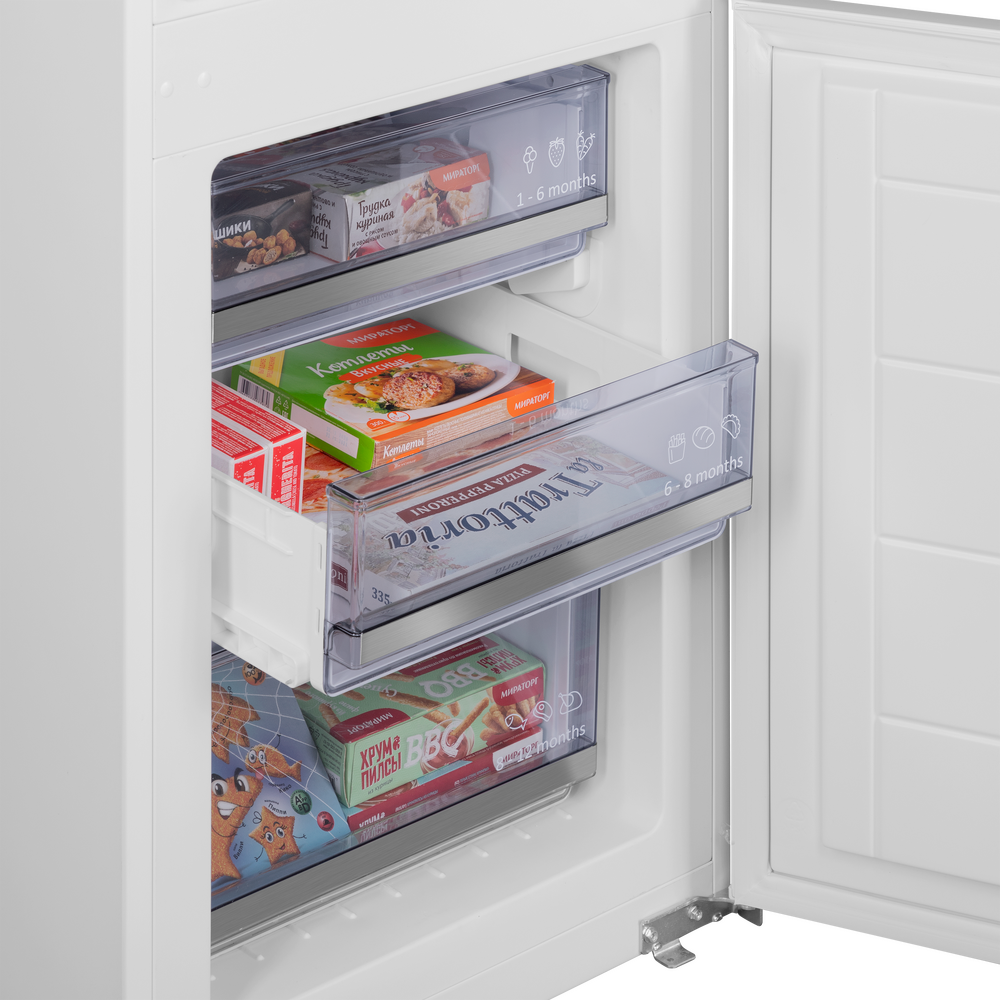 Запаса пространства достаточно для семейных покупок и заготовок: общий объём 273 л позволяет удобно распределять свежие и замороженные продукты. Светодиодное освещение делает внутреннее пространство наглядным, а электронная панель со ступенчатой регулировкой упрощает выбор нужного режима.