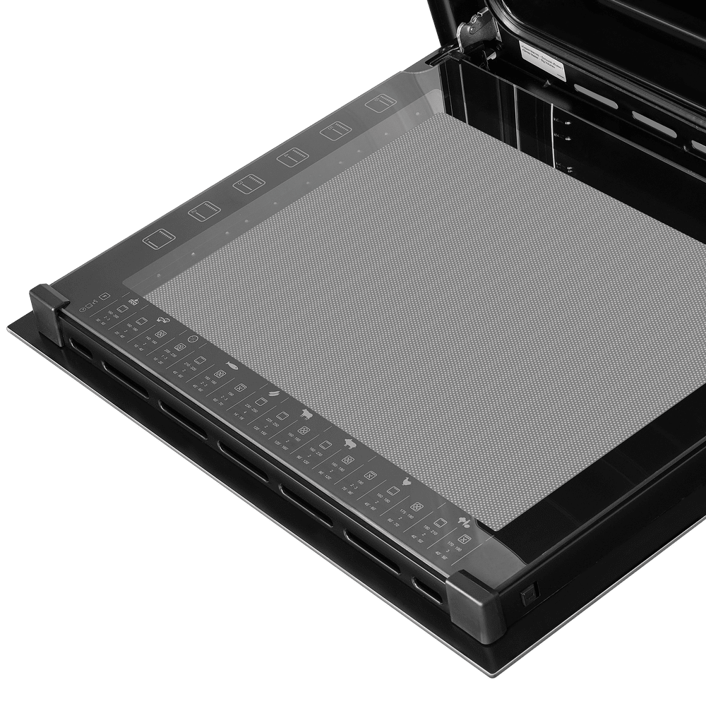Двухуровневые телескопические направляющие делают извлечение противней безопасным и удобным: выдвигайте горячий противень, проверяйте степень готовности и добавляйте соусы без риска обжечься. Технология «Холодный фронт» бережёт ваши руки и кухонную мебель, сводя нагрев внешнего стекла к минимуму.