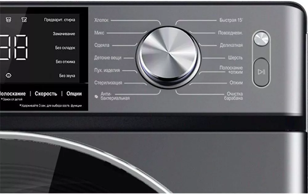Программы - быстрая стирка, ежедневная стирка, ночной режим, отжим, стирка деликатных тканей, стирка детских вещей, стирка одеяла, стирка пуховых вещей, стирка смешанных тканей, стирка хлопка, стирка шерсти