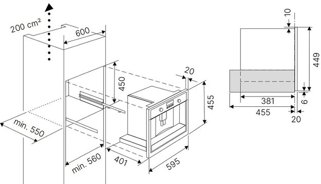 • Габариты ниши для встраивания (Ш×В×Г): 45 × 56 × 55 см